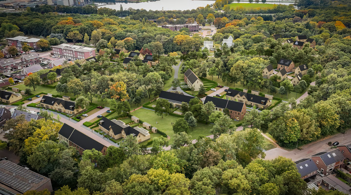 In Gennep ontwierpen we voor CRA Vastgoed de wijk ๐—›๐—ฒ๐—ถ๐—ธ๐—ฎ๐—ป๐˜, eveneens op een voormalig instellingsterrein. De locatie ligt midden in het ๐— ๐—ฎ๐—ฎ๐˜€๐—ฑ๐˜‚๐—ถ๐—ป๐—ฒ๐—ป๐—น๐—ฎ๐—ป๐—ฑ๐˜€๐—ฐ๐—ต๐—ฎ๐—ฝ en kent open plekken binnen het bos die richtinggevend waren voor het ontwerp.